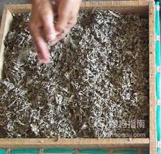 将艾叶去梗,尽量把艾叶的茎分离出来,然后放到石臼里面进行捶打,时间约为10-20分钟。然后将其倒入筛子里进行筛选并挑选出之前没有挑出的梗。