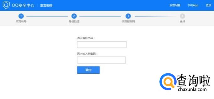 设置新的QQ密码,并再次输入新密码进行确认,最后点击下面的“确定”按钮。