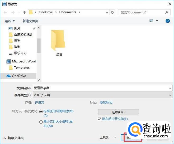 之后我们点击保存就可以了,这样就将word文档转化为PDF文档了,还是比较简单的,相信大家现在都会了。