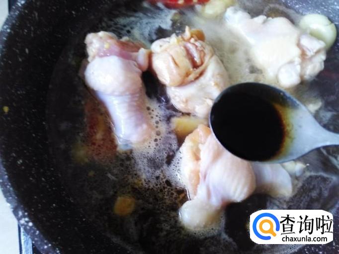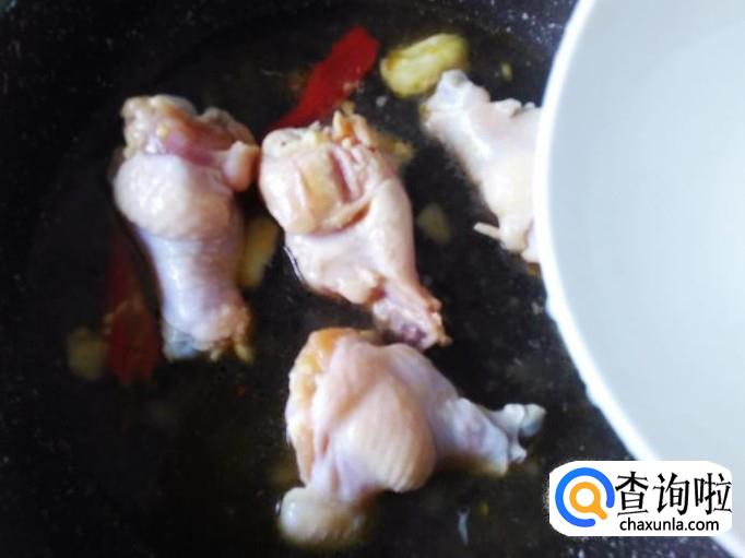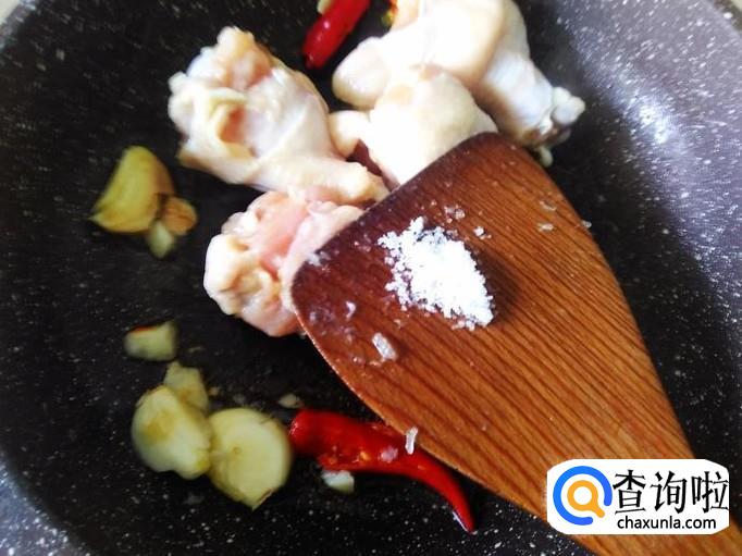 鸡翅腿下锅,加适量的盐翻炒入味。