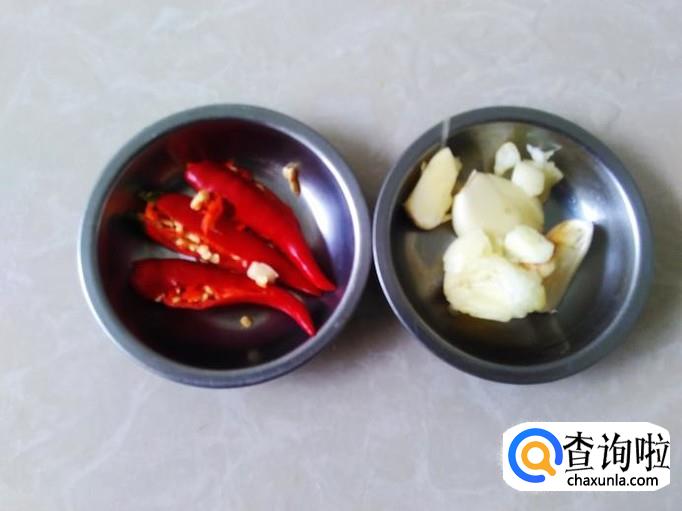首先把鸡翅腿清洗干净,小米辣和蒜米用刀背拍扁。