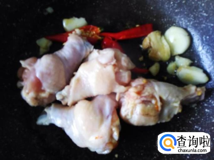 鸡翅腿150克,小米辣、蒜米适量,2勺生抽、1勺料酒、几滴老抽。
