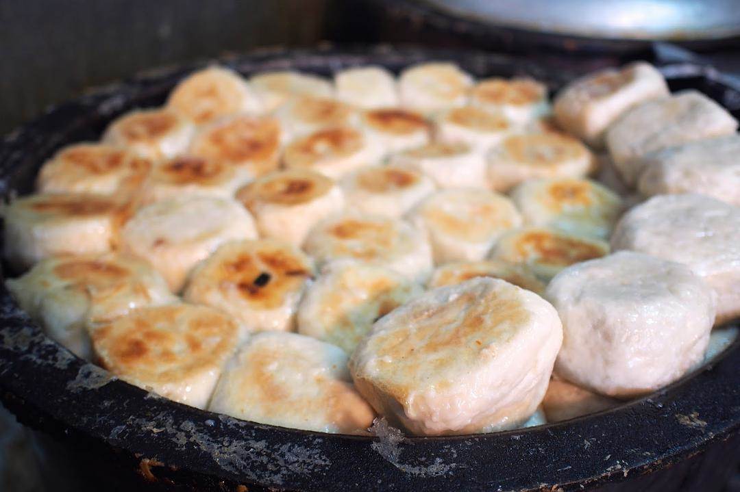 水煎包,其实就是发面的包子,一份成功的水煎包,有着恰当好处的酥皮,鲜嫩入味的馅料,仅需一口便无法自拔。做水煎包时,要先加油将包子煎一下,然后再加水,不放水它就没有足够的蒸汽使包子成熟。想要做出薄如蝉翼的酥脆外皮,要用面粉水而不是淀粉水,出锅前再加入少许的食用油,并且晃动平底锅和包子分离,这样保证水煎包不会粘锅。