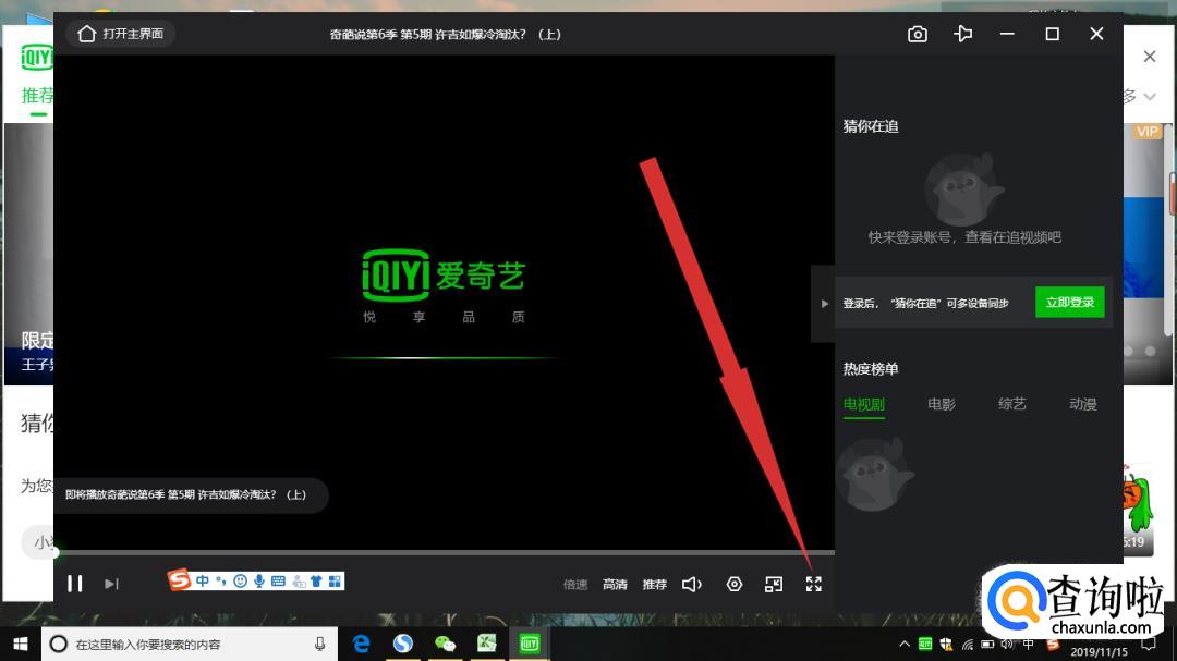 然后点开播放界面右下角的全屏显示按钮。