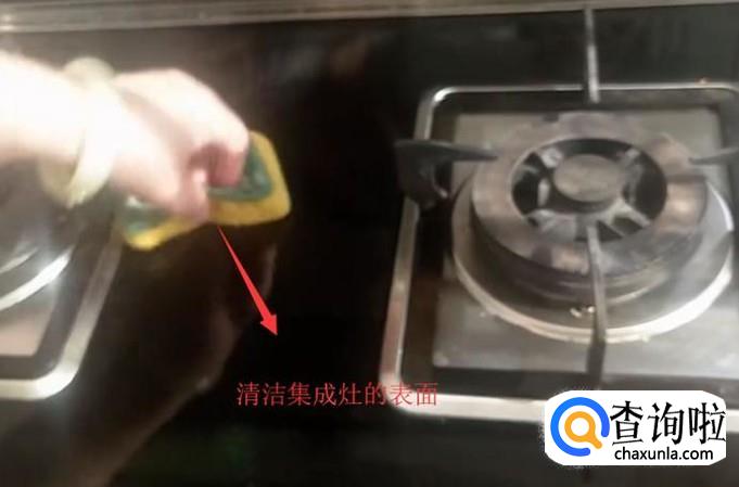 然后继续用软棉擦清洗集成灶的表面,如下图所示
