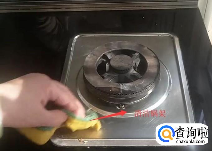 首先我们用软棉擦清洗一下集成灶的锅架,如下图所示