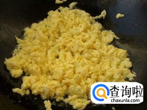 鸡蛋适量,打在碗中,加入适量的盐,然后用筷子将蛋白与蛋黄搅拌均匀,锅中加油,油7-8分热时加入鸡蛋液,鸡蛋液下锅马上翻炒,直到炒至鸡蛋完全凝固,如下图所示