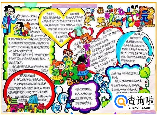 (3)美化过程:文章抄写完毕后,即可进行插图、尾花、花边的绘制(不宜先插图后抄写),将整个版面美化。这个过程是手抄报版面出效果的关键过程。