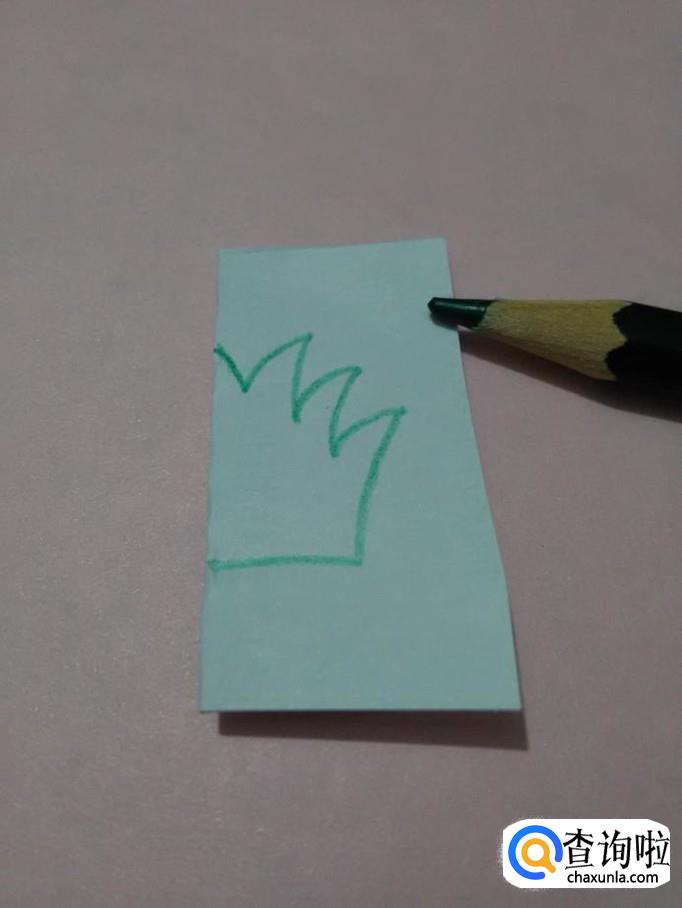 用绿笔在纸上画几个锯齿形状,表示草丛,下方画一条直线,表示地面。