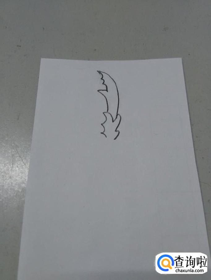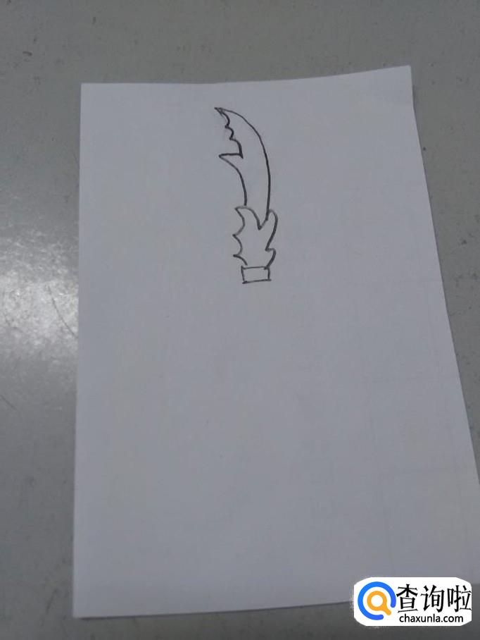 先用笔在纸上画一条弧线,表示青龙偃月刀的刀刃。