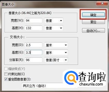接着输入宽度为2.5,高度为3.5,如下图所示。(以上高和宽为一寸照片的比例,大家可以根据自己的需要进行放大)
