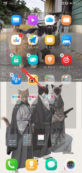 长按软件后可以看见左上角出现了一个“×”的标志,点击它,如下图所示。