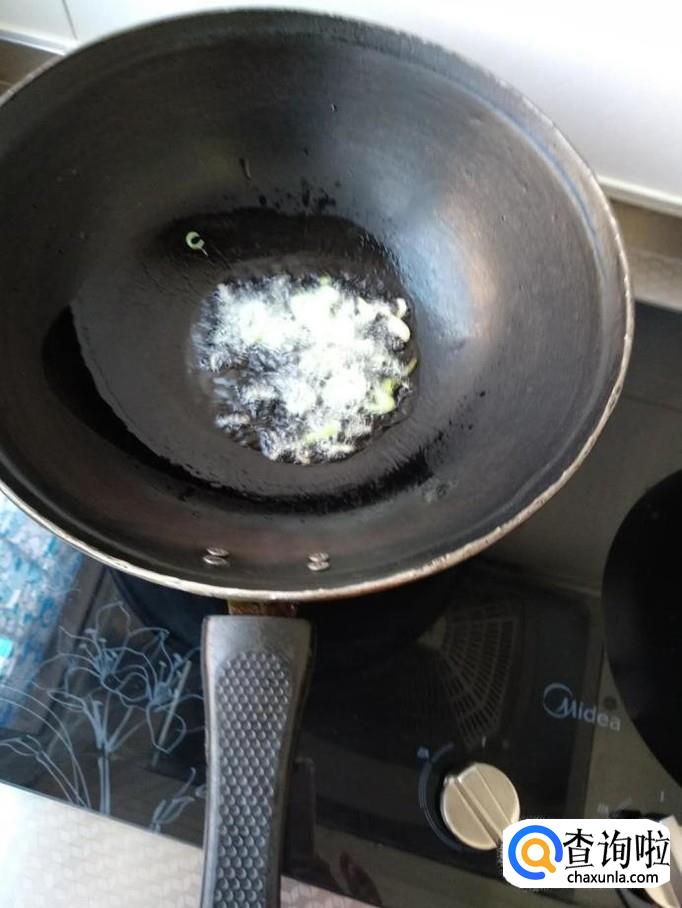 加下来依次放入葱、姜、蒜等辅料,至爆香后关小火。