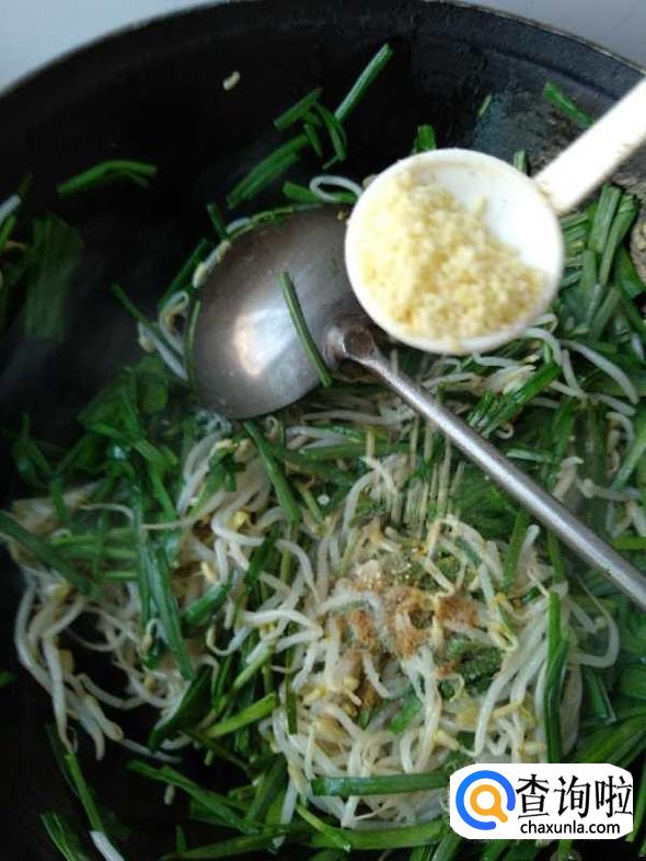 韭菜和豆芽作为这道菜的两位主料,需要事先将其洗净,并将豆芽浸泡半小时以后取出装盘备用。韭菜这需要根据需要进行切段备用。