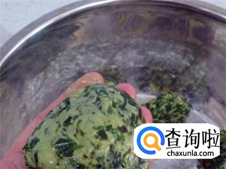 玉米面放那儿晾着,咱们把红薯叶收拾一下,红薯叶清洗干净之后不用焯水,直接剁一下然后用手把水挤出来就行了。