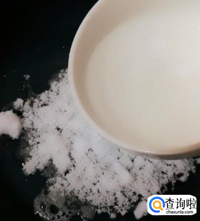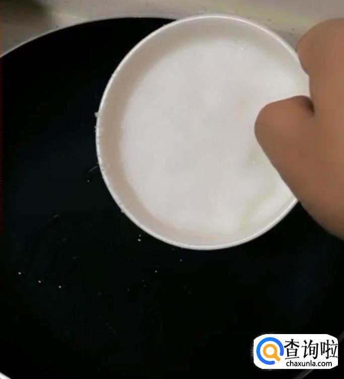 将半碗白砂糖放入炒锅,开始做糖浆,这个步骤非常的关键。