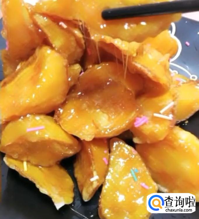 最后将红薯块放入,使得每块红薯都粘上糖浆,拔丝红薯做好了。