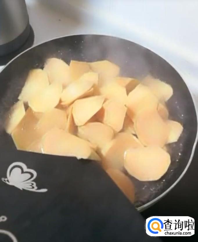 汤锅放水,水开将红薯放入,加盖儿煮两分钟,煮好后,将红薯捞出。
