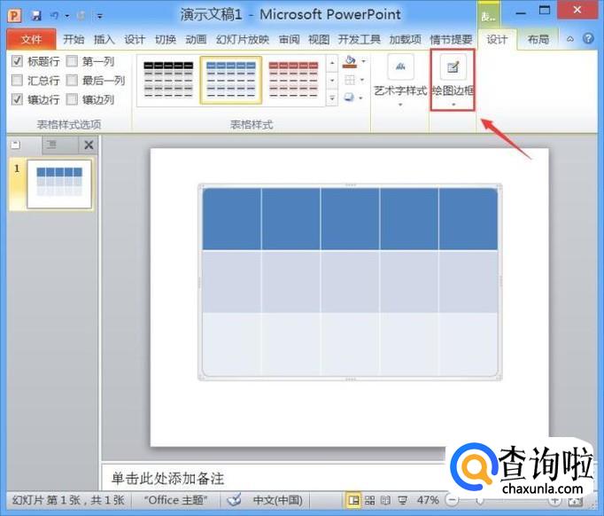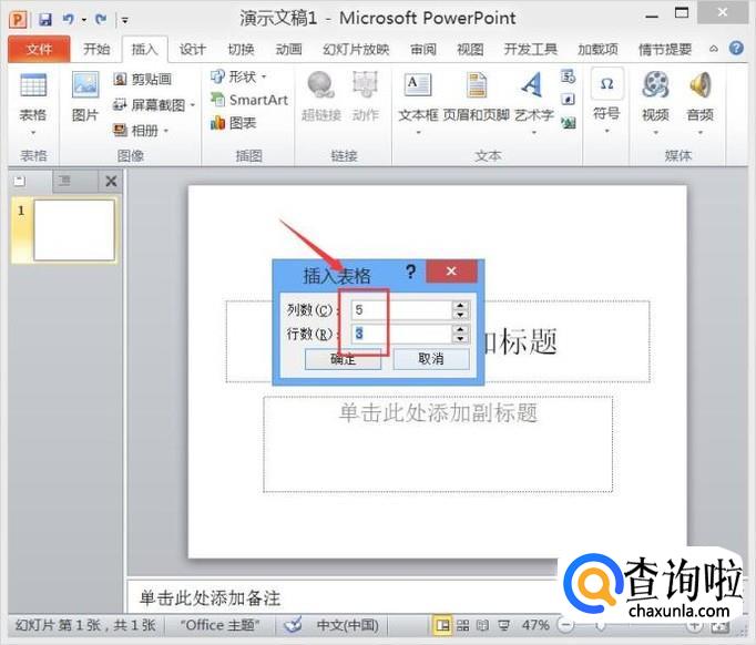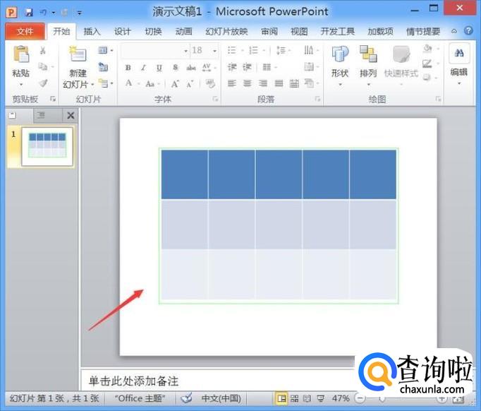 打开PPT之后我们找到插入选项里的表格选项,如图所示: