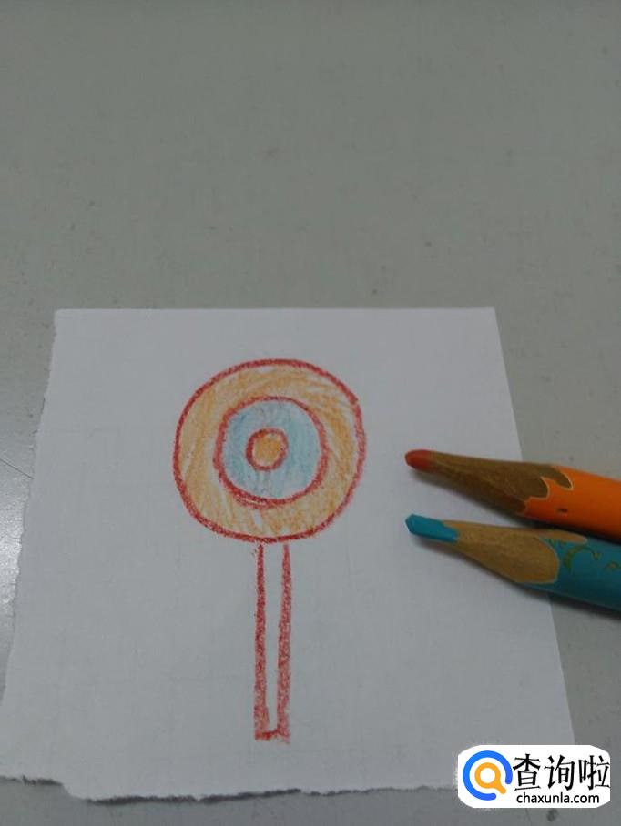 再用红笔在里面再画两个小圆,表示里面的糖。