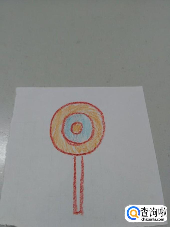 画棒棒糖,要画出圆形的糖和下面的棍,下面就开始画棒棒糖。