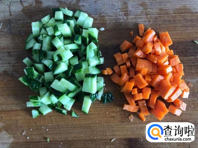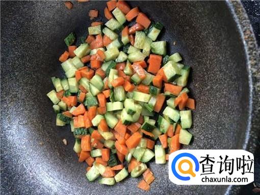 先将胡萝卜放入锅中炒,看胡萝卜变软后放入黄瓜,翻炒几下后放入鸡胸脯炒