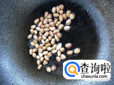 这多时间我们把生的花生过油,炸至酥脆,装入盘中放凉备用