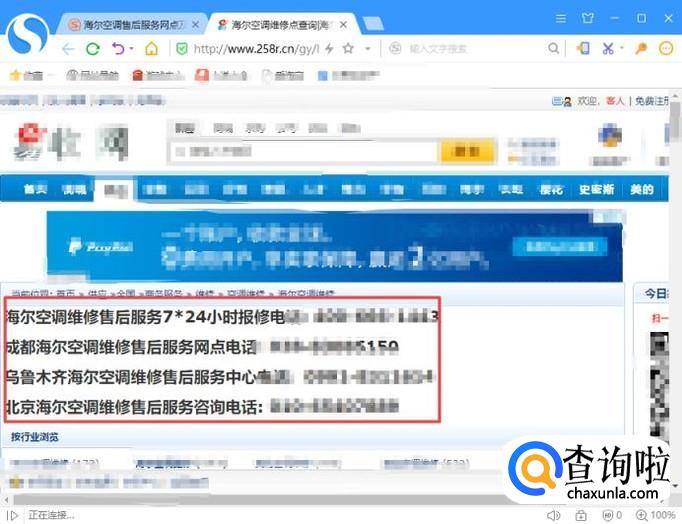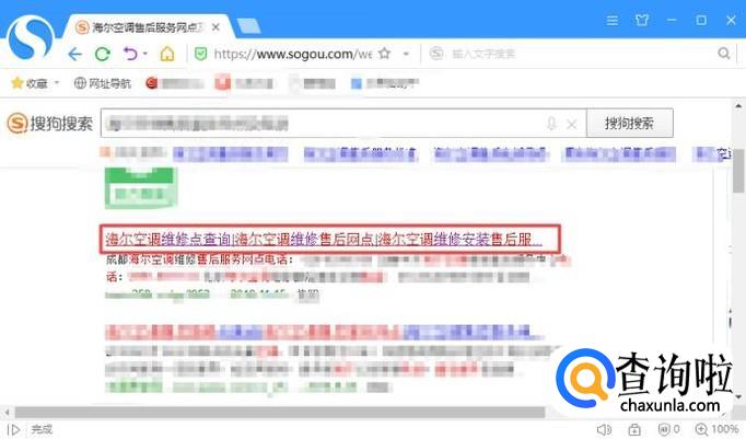 结果如图所示,这样我们就查看到海尔空调售后服务网点及电话了。