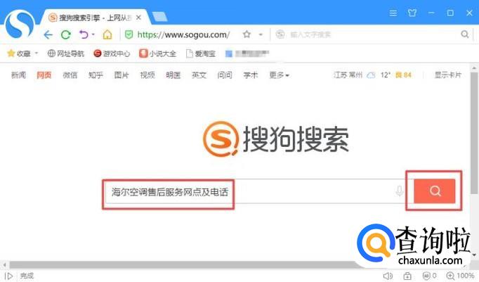 之后我们在搜索框中输入海尔空调售后服务网点及电话,然后我们点击后面搜索按钮;