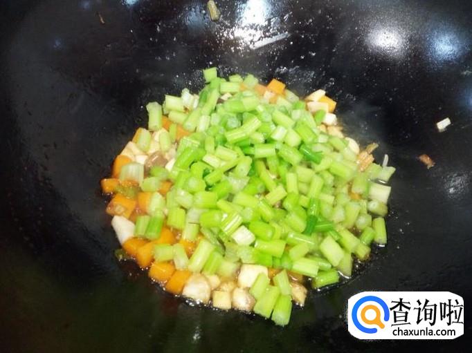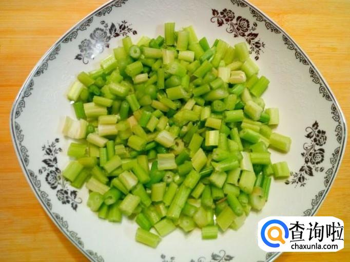 香芹收拾清洗干净,控干水分,切成丁。