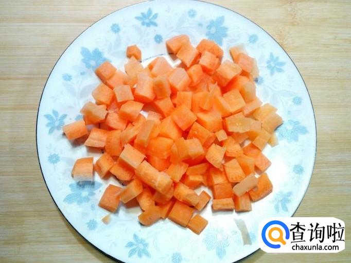 胡萝卜去皮,用水清洗干净,控干水分,切成丁。