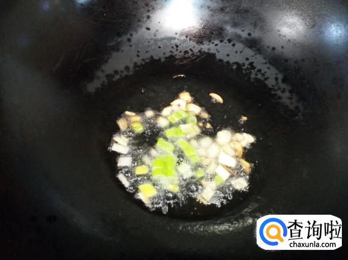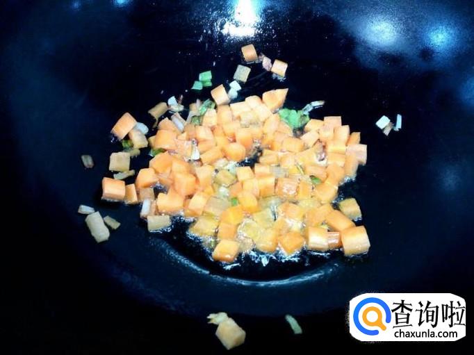锅里放入油加热,油热后放入葱,姜,蒜,爆锅,放入胡萝卜翻炒。