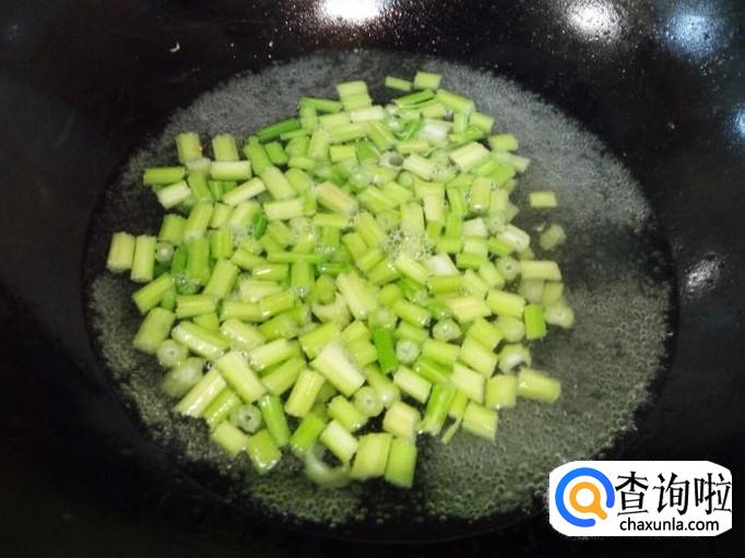 炒至香芹断生,放少许味精,关火出勺。