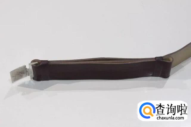 根据自己腰围的大小调整武装带的长度,然后把扣环推到,印有“八一”字样铁片的那一端,并把里侧折进去的部分对折。