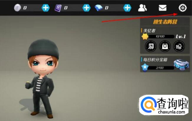 进入逃跑吧少年游戏的主界面,在右上角位置找到设置图标并点击,如下图所示。