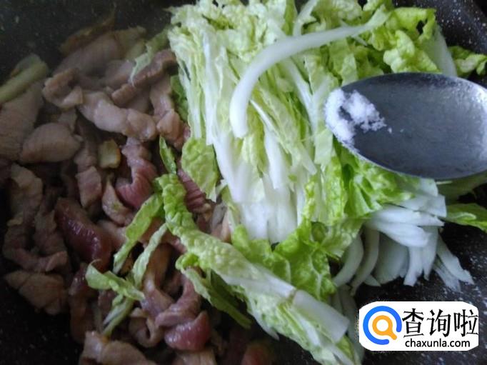 把娃娃菜下到空格加少量的盐翻炒一下。