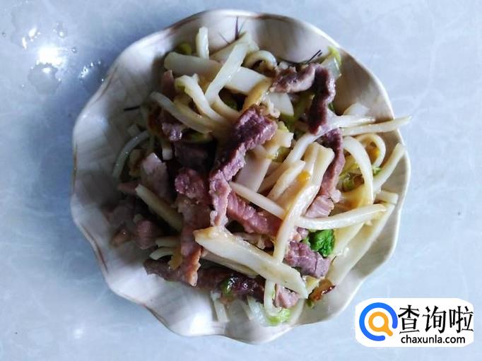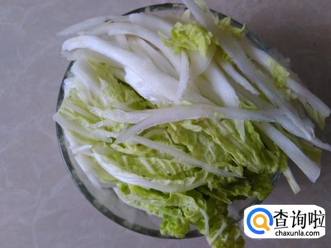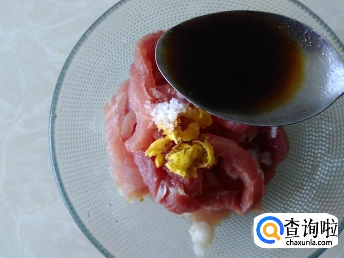 把瘦肉切成丝,加盐、姜蓉、生抽腌制几分钟。