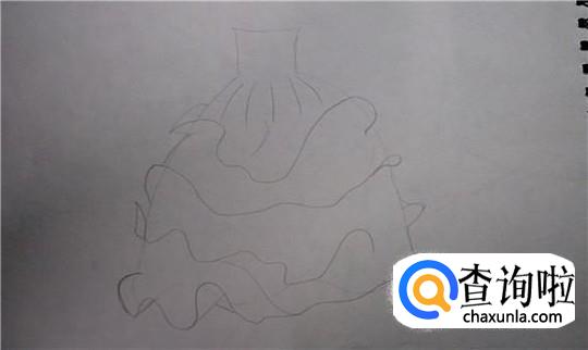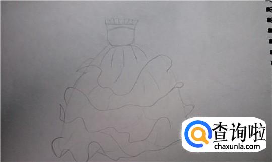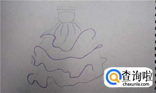 用黑色彩铅描出公主裙的大致形状,不用太用力,轻轻描就行了。