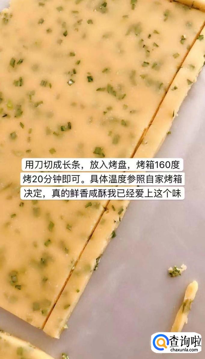 接着用刀切成长条,放入烤箱,烤箱160°火烤20分钟就可以了。