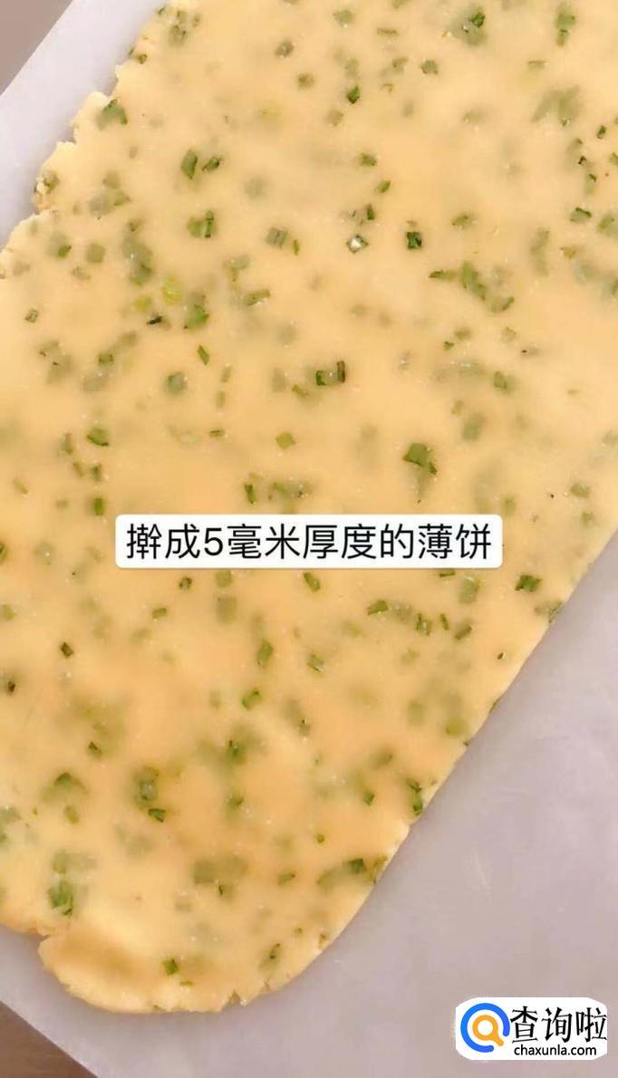 然后把面团擀成5mm厚度的薄饼,如下图所示。