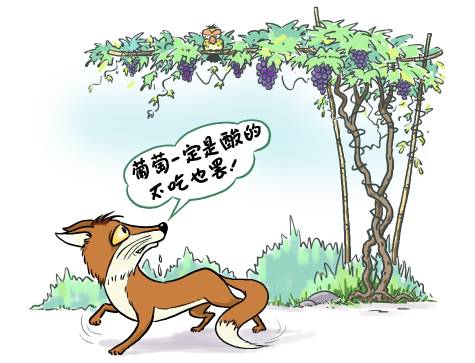 在伊索寓言中有个《狐狸与葡萄》的故事,说的是那狐狸本来是很想得到已经熟透了的葡萄的,它跳起来,未够高,又跳起来,再跳起来……想吃葡萄而又跳得不够高,这也算是一种"挫折"或"心理压力"了,此时此刻那狐狸该怎么办呢?若是一个劲地跳下去,就是累死也还是跳不够那葡萄的高度。于是,那狐狸说:"反正这葡萄是酸的。''言外之意是反正那葡萄也不能吃,即使跳得够高,摘得到也还是"不能吃",这样,狐狸也就"心安理得"地走开,去寻找其他好吃的食物去了。