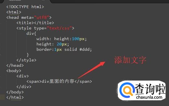 然后我们在div中加入一些文字,如下图所示,文字用span包裹起来