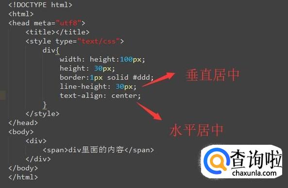 接下来我们就需要用CSS给div中的内容设置居中了,如下图所示,通过text-align和line-height实现