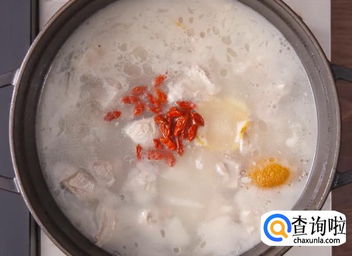 放入山药块煮五分钟,然后放入枸杞。再煮五分钟就完成啦。