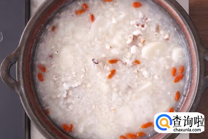 山药薏仁芡实粥:山药、薏仁、芡实、枸杞、大米