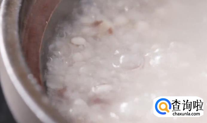 接着锅中加入饮用水烧开,放入大米和芡实。大火煮沸后转小火30分钟至软烂。