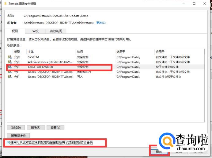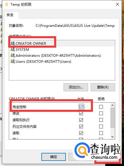 在新弹出来的界面中,选中刚刚的主体,然后勾选【完全控制】,最后点击【应用】即可。完成以上步骤,就可以删除该文件夹啦。