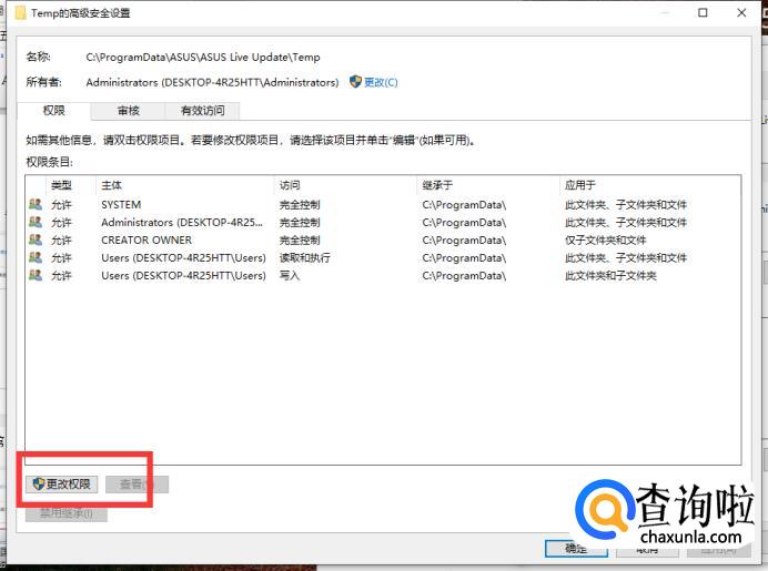 然后在新弹出来的界面中,点击左下角的【更改权限】。
