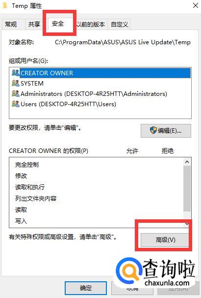 在新弹出来的界面中,点击上方的【安全】,然后再点击【高级】选项。