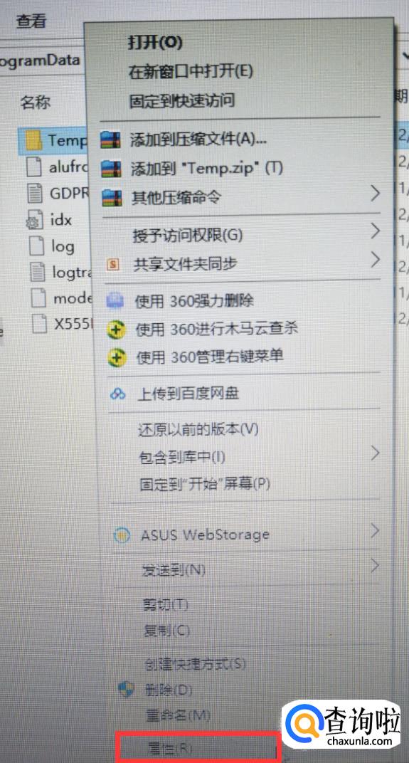 首先我们用鼠标左键选中此文件夹,然后再点击鼠标右键,找到【属性】,并点击打开。